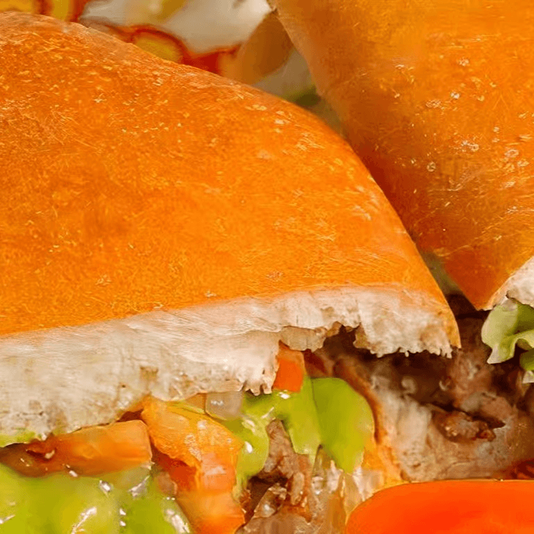 2 pieces. Sheared beef, onions, tomato, and bell pepper. Served with rice and beans