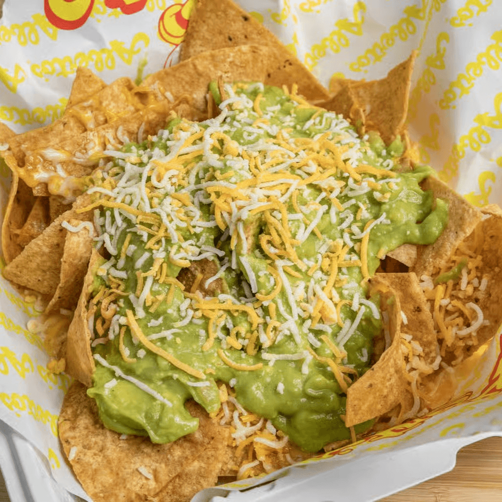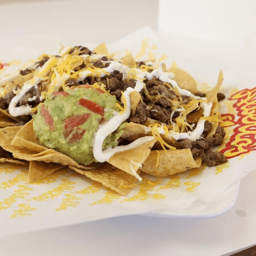 Cheese, beans, sour cream, guacamole, and choice meat.